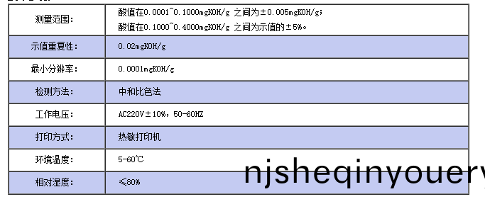 0.0001~0.100mgKOH/g之間爲±0.0005mgKOH/g;痠值在0.100~0.40 |
